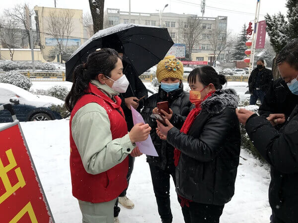 日根据永寿县疫情工作部署,生产技术支部书记带领公司第一批党员志愿者赴永寿县朱雀锦绣社区全民核酸检测点,冒着严寒大雪,协助维护秩序和帮助老人用手机核酸检测登记扫码……。充分发挥基层党组织的战斗堡垒作用和党员的先锋模范作用,有力筑牢疫情防控堡垒,让党旗在华浩轩防控疫情斗争第一线高高飘扬。